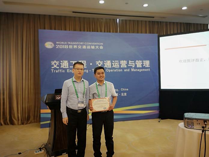 交通工程系系主任杨飞教授,副主任曹鹏老师,谢军副教授,杨鸿泰副教授,熊耀华老师应邀参加了此次大会论坛。杨飞教授的论文《Travel Route Detection Based on Earth Mover's Distance Algorithm Using Wireless Cell Trajectory Data》被评为大会优秀论文,并获颁“2018世界交通运输大会优秀论文证书”,在大会接受的1829篇论文中,优秀率仅有4%。今年10月,公司交通工程专业将迎来第二轮专业认证,通过此次大会可以促进与国内外同行的交流,加强国内外同行对公司交通工程专业的认识,进一步提升专业影响力。