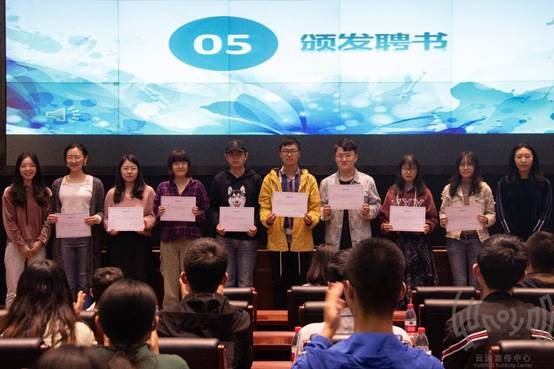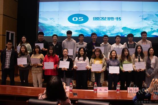 在薄琳老师分别宣读完2018级,2019级朋辈导师分班名之后,薄琳老师和甘升碧老师为2018级朋辈导师颁发聘书,于博伦老师和郑康康老师为2019级朋辈导师颁发聘书。