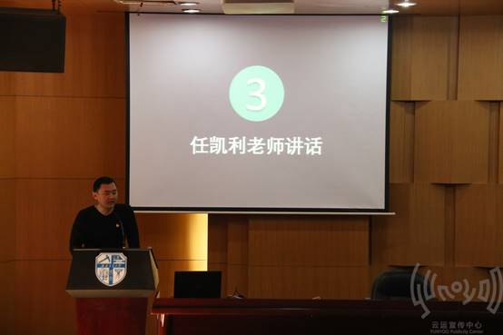任凯利老师讲话,他表示融媒体的时代已经到来,每一个媒体人都应该“因事而化、因时而进、因势而新”,力求走到媒体发展的前沿。他相信在座的每位媒体人都会通过本次会议学会新技术新本领,在新媒体中传播青年学子的正能量,为交大甚至全国的媒体事业贡献出自己的青春力量。