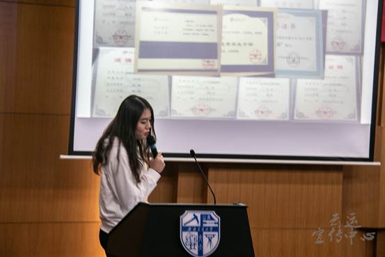 邱菲尔在大学各阶段都有明确目标,不断成长,精益求精,从成绩优异走向全面发展,百尺竿头,更进一步;夏云鹏积极尝试新事物,多面发展,坚定自我选择,从平凡到优秀,圆满结束大学攻坚战。王倩妮因事未能到场,但以视频形式展示自我风采,她注重沟通交流,认真对待学习与工作,重视细节,坚持良好习惯,优化时间,用汗水与智慧铸就无悔青春。