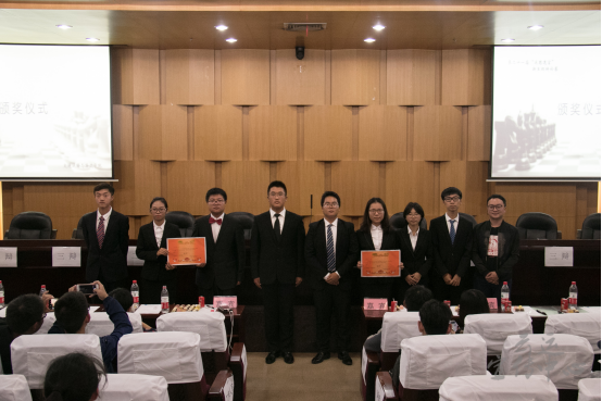 最后,经过评判团认真的评判,主持人宣布,本场比赛的获胜方是物流二班辩论队,最佳辩手为反方三辩马璇同学。员工会主席周益和17级辅导员雍腾老师分别为全场最佳辩手和新生赛冠亚军颁奖并合影留念。