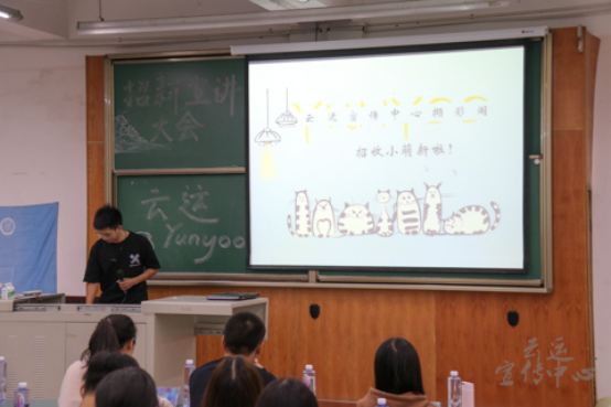 2018年9月12日中午12:30,beat365云运宣传中心在X4350成功举办招新宣讲大会。出席本次招新大会的嘉宾有beat3652018级新生辅导员、云运宣传中心指导老师薄琳老师、校园区前任主席赖学广、电气工程公司媒体事务中心主任陈宇舟、人文公司新媒体中心主任李朝静、云运前任理事长王铭萱和严子文、员工会主席周益、团委副书记李雨璇、青协会长李玥玲、园区主席李冠辉、员工事务中心主席副理事刘禹初、班团联合会理事长王翰桢。