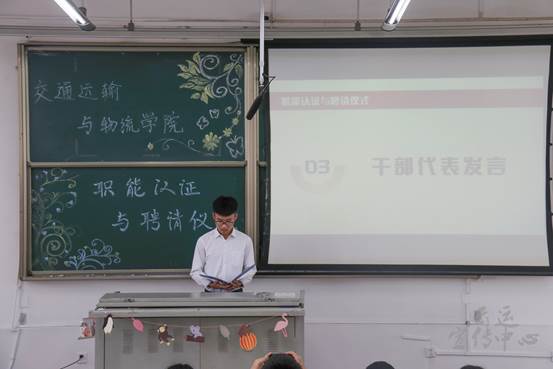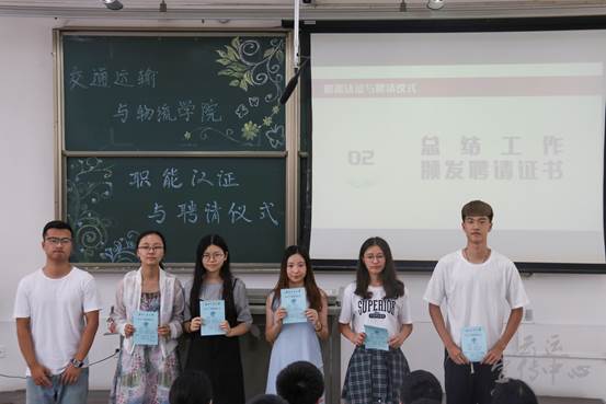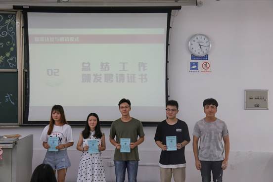 紧接着,由各组织代表上台发言总结,并为组织员工干部颁发聘请证书和合影留恋。员工会主席周益表示他们将继续以务实、团结和高效作为管理理念,积极开创团建活动,以增强同学综合素质为目标继续前行。青协会长李玥玲展望未来他们要为打响交运青协品牌而不断努力、不断创新,传承和践行“但行好事,莫问前程”的精神。事务中心理事长黄哲提出今后他们将以更专业、高效的办事理念服务老师和同学,拓宽服务范围。团委副书记李雨璇分析指出团委将以团建青年、能力青年和服务青年为宗旨,加强团建工作,使公司发光发热。园区主席李冠辉感恩老师的帮助,感谢员工干部的努力,希望公司各大组织同舟共济,携手共建公司。云运理事长张雅睿满怀信心地肯定道,云运将继续增强对院内活动的参与度,扩大在公司内的影响力。班团联合会会长王翰桢分析得出,他们将通过改善部门构建、成员组成和社团活动,为公司进一步提高班风学风建设不懈努力。