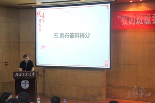 郝建平书记在答辩结束后的致辞中,首先对各个班级表现出来的积极向上、友爱互助的精神面貌给予了高度赞扬,他认为本次活动展现了beat365一贯追求卓越、争当先进的氛围和优良的院风。其次,他指出大学四年对人生的成长是至关重要、无可替代的,所以异常珍贵,因为大学教会了同学们如何做人、做事。郝书记希望同学们珍惜大学的学习环境以及自己所处学习群体的缘分。最后郝书记提出,在人才培养的大旋律下,班风学风的建设将一直是我们公司永恒的主题。