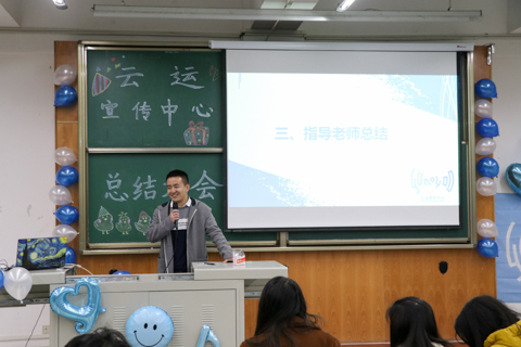 游戏与表演完毕后,云运指导老师徐君翔老师做工作总结,他首先对如“家”氛围的会场布置、流程设计提出了高度赞扬,称赞其符合云运“孕于云端,承于交运”的发展理念。云运正值盛世,作为获得“十佳校园新媒体”称号的院媒,云运的建设也受到校团委高度肯定。徐老师指出,云运的发展是一部血泪史,五年的奋斗与坎坷为如今辉煌的新时代打下坚定基础,云运必须以“情”为本谋求发展,只有用情去培养干事、锻炼人才,云运才能越走越好。最后,他希望云运全体成员不负众望,携手开拓未来更广阔的发展空间。