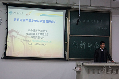 2017年12月6日晚19:30,“收益管理理论及应用”创新讲座在犀浦校区X2537教室正式开讲,主讲人为张小强副教授。本次讲座着重介绍收益管理的基本理论,以铁路运输、航空运输服务为例,论述收益管理的理论和应用价值。