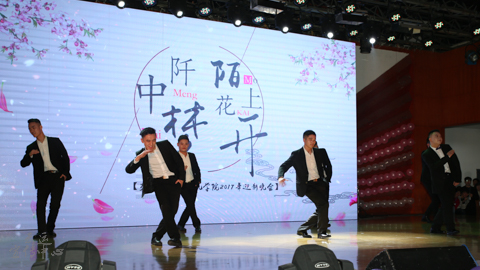 在此之后,我们的交运辅导员们与助辅们带来了充满特色的火爆表演——飞黄腾达也要赖着妮。一首《凉凉》送给了我们在场的各位,雍腾老师和黄莺老师在准确拿捏高音后赢得了在场最高的欢呼声。而郭静妮老师、赖宏智老师和助辅们的舞蹈更是让场面一度high到了极点。她们性感的舞姿,热辣有力的动作让我们看到她们与现实生活中反差的魅力,而男助辅们的逗趣beat it充满了喜感。最终他们用充满和谐爱意的华尔兹完美谢幕。