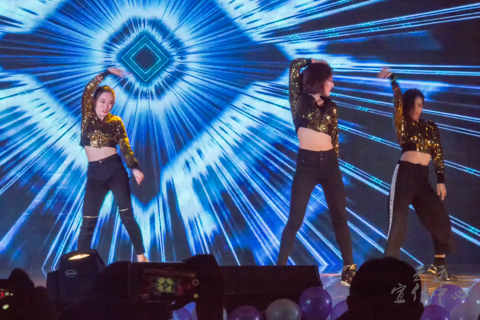 第一章节打头阵的是云运和园区的歌舞串烧。无论是云运小可爱们充满节奏感的舞蹈和气场全开的说唱,还是园区同学们的荧光舞都将晚会推向了第一个高潮。