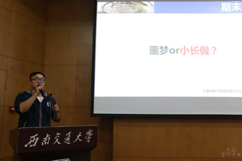 报告会开始前,雍腾老师为同学们介绍了交运之星对于交运学子的意义,并列举了交运之星的多种分类鼓励大家多元发展。他指出,本次报告会并不是让同学们禁锢脚步,照本宣科地仿效临摹,而是从优秀的人身上汲取成功的动力与经验,从而明确定义自我。