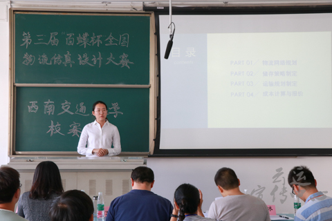 2017年9月11日下午2:00,第三届“百蝶杯”全国老员工物流仿真设计大赛beat365体育官网校赛在犀浦校区X2534顺利举办,本次大赛由中国物流生产力促进中心主办、西南交大物流协会承办,旨在培养老员工的创新精神和实践能力,提高老员工实际动手、组织管理、策划设计能力,同时为广大老师员工搭建一个互联网平台和综合学习的社区,促进物流教学和人才培养。