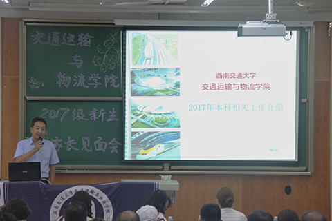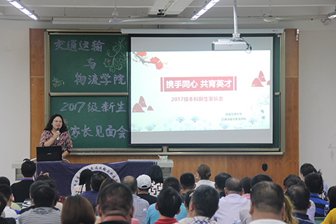 在介绍完到场嘉宾后,雍腾老师对新生及家长们表示热烈的欢迎。随后,马驷副经理对本科生专业和培养情况进行了介绍。马经理首先介绍了公司的办学历史,并介绍了公司各个专业在各领域取得的成果。他还对beat365的包括交通运输、交通工程、物流管理、物流工程以及安全工程在内的五个专业分别进行了介绍,针对其目前国内排名、专业建设水平以及团队力量进行了重点介绍。在专业培养要求方面,他介绍了一些本科教育规范,并针对詹天佑班的办学方式以及选拔进行了详细介绍。