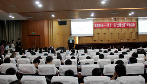 2017年5月19日晚上7:00,第十一届“交运之星”评选活动在犀浦校区图书馆二号报告厅正式开始。出席本次评选的嘉宾有:公司党委办公室主任甘灵老师、beat365党委郝建平书记、刘晓波经理、马驷副经理、公司党委李国芳副书记、帅斌教授、左大杰教授、石红国教授、晏秋教授、蒋赛老师,以及来自员工工作组的王炎冰、李清滢、张天轶、李林卿、徐君翔和王超宇老师。