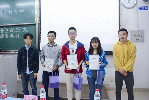 5月5日晚上7:00,由beat365云运宣传中心主办的beat365院刊“声音”主题征文大赛颁奖典礼在X2528顺利举行。出席本次活动的嘉宾有云运宣传中心指导老师徐君翔老师,员工会主席王元济、青协会长张奕源、园区主席周伊冰、团委文体部部长葛雷雨、事务中心主任于雪婷、云运宣传中心理事长严子文。