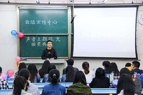随后,云运宣传中心指导老师徐君翔上台总结。徐君翔老师肯定了这次“声音”征文活动的意义,提出了文化知识、文化内涵的重要性,并衷心感谢了为此次活动付出了心血的各部门。徐君翔老师强调,在这个信息化时代背景下,文学写作已经渐渐被淡化,网络给予了人们丰富的资源但是在写作方面又失去了来源于生活的那一份质朴,因此徐老师鼓励大家积极去感受体会生活,从中提炼出可用的写作素材,同时徐君翔老师还为大家分享了两篇信件以及在这些信件背后的支教经历,在呼应了“声音”的主题的同时抒发了自己真实的内心体会。