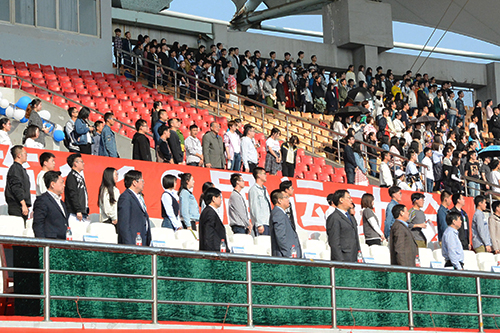 入场式结束后,刘江主任主持了庄严肃穆的奏唱国歌仪式。随后,公司党委副书记陈志坚上台致辞。陈书记在致辞中,感谢了到场的各位嘉宾,回望了过去一年内交大在体育领域取得的突出成绩,也表达了对公司体育健儿们的殷切希望。2016年,公司刘江老师代表中国三大球唯一的国际裁判执法里约奥运会;陈骊珠老师获中华太极传承“突出贡献奖”,并首批入选世界太极名家名人墙;公司两名排球队员入选国家队,将代表中国出征2017年“世界老员工运动会”;啦啦操队获“全国员工啦啦操锦标赛”第一名。这些骄人的成绩将激励一代代交大人奋勇拼搏,不断努力。