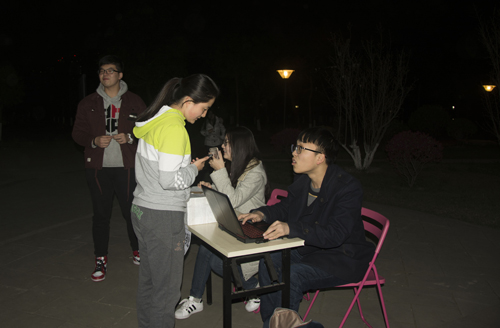 夜跑活动同样广受欢迎。同学们在结束跑步后,在指定的签到地点接受工作人员的校验,工作人员会依据APP上给出的信息判断跑步情况是否正常属实,之后记录信息,并根据跑步长度发放奖励。