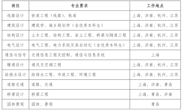 道路交通、选线、轨道、电气或自动化、信息、通信、暖通、建筑、结构工程、隧道与岩土、桥梁、规划、给排水、园林景观等。